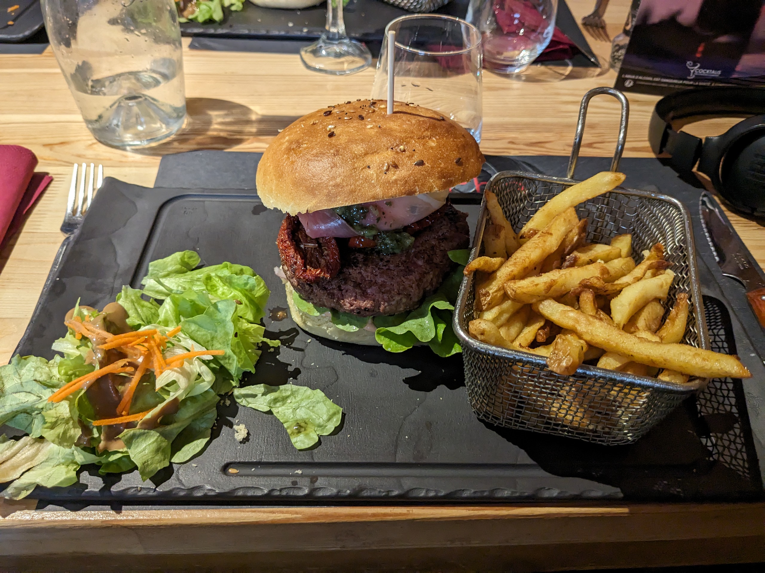 Not a good burger . I have ordered the comtois burger ,medium cooked. It was dry ,not juicey.the cheese was strange,it didnt melt evenly on the burger. My companions had medium-well burgers and theirs were very dry and crumbling. It seems as if the meet has not enough fat and over-cooked.