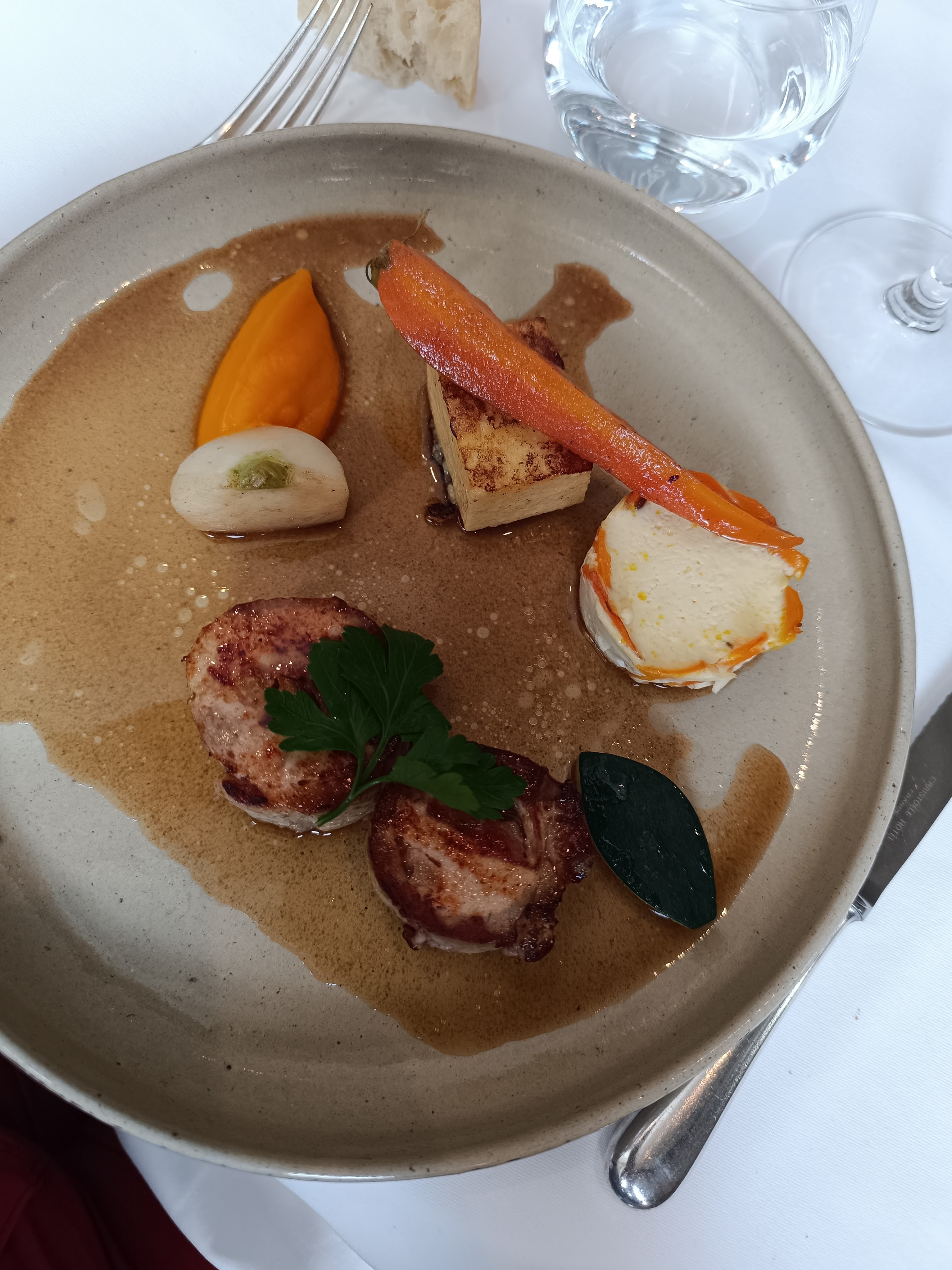 This two-storey town house is just outside the centre of Caen, not far from the Abbaye-aux-Hommes. Olivier Barbarin, an experienced chef who is no stranger to fine dining, wanted a location and cuisine that are an extension of himself: confident and delicious food, and decor with a nod to his native Auvergne – the purple walls evoke volcanic rock such as pozzolan. Marengo veal ravioli, hake, Anna apples, pumpkin cream: the formule is a very attractively priced lunch deal, and in the evening a tasting menu is revised depending on the market and the mood.