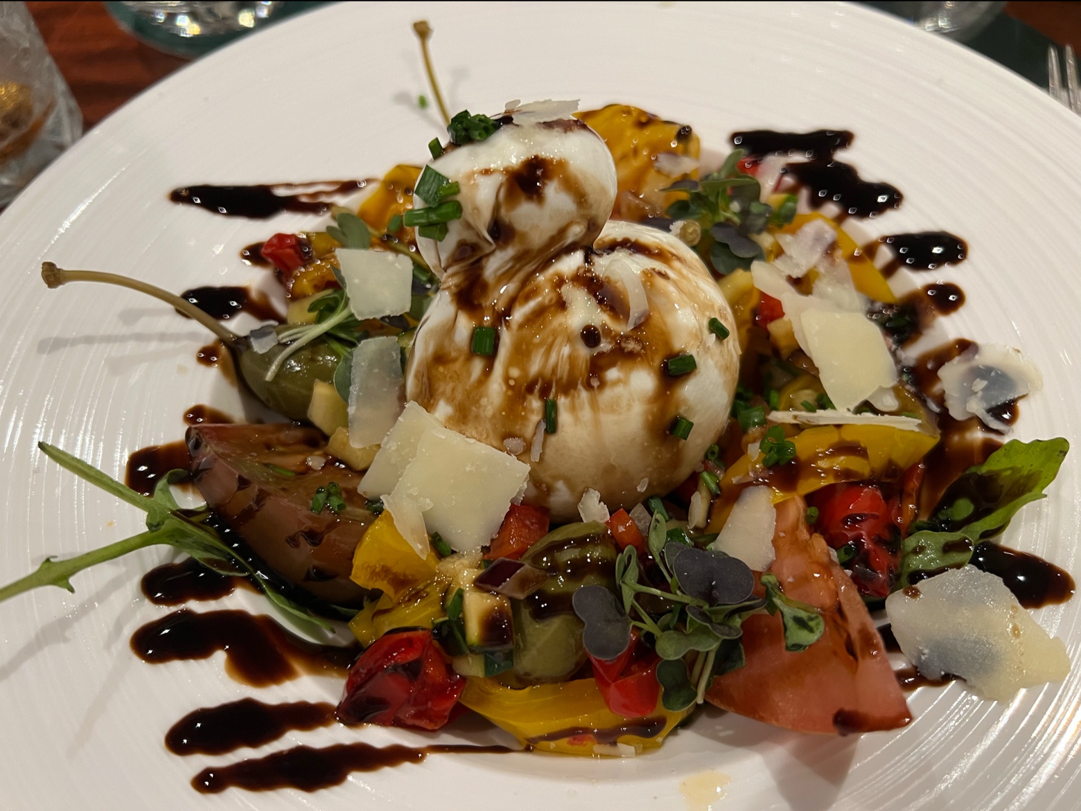 Next, a burrata with vegetables and focaccia was served. This time, the mozzarella turned out to be exquisite despite the temperature still being a little too cold, and the expertly prepared vegetables that accompanied it were delicious. The focaccia, served to accompany everything, was decent.