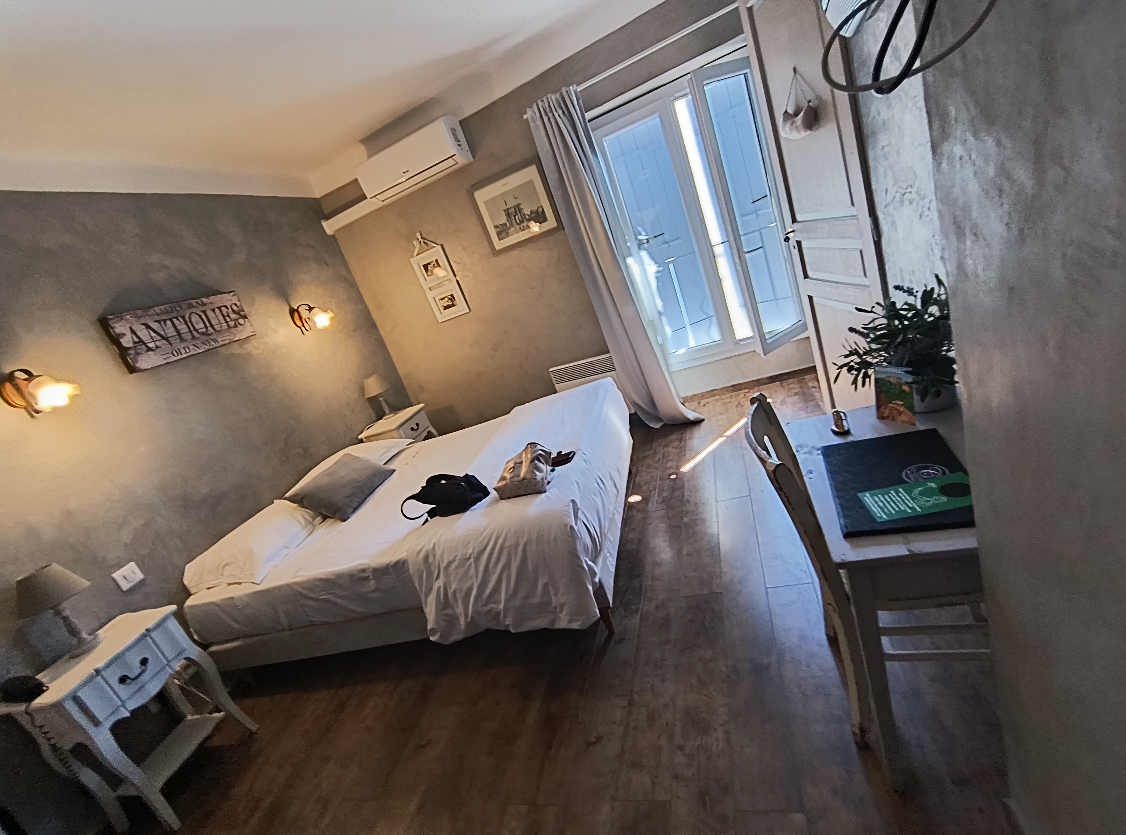 Ended up here at the last minute for a couple of nights. Charming inn! Our room had double bed in the main level and a loft with two additional twin beds. Very quiet. Main complaint was not enough electrical outlets in the loft and the a/c wasn’t working. They did provide fans, but up in the loft it was warm. Very small bathroom shower area, even by French standards. We didn’t eat breakfast or dinner there, so can’t comment on that. However, this is the ONLY restaurant in the village.