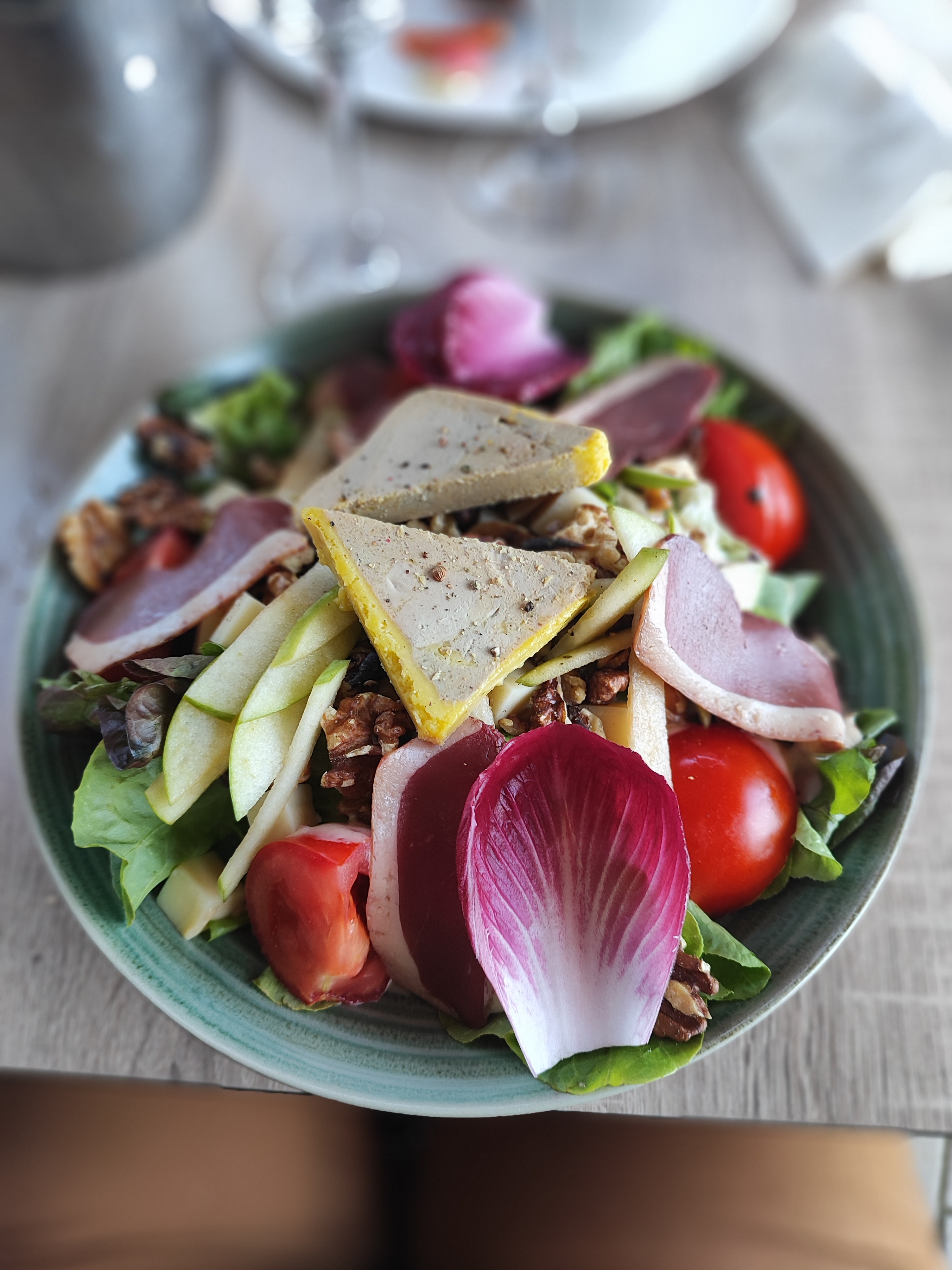 The setting is really pretty and pleasant with a magnificent view outside. The dishes are correct as well as the portions. The waitresses for the wine and the meal were cold and unfriendly, it's a shame. I still recommend the place for the pleasant setting.