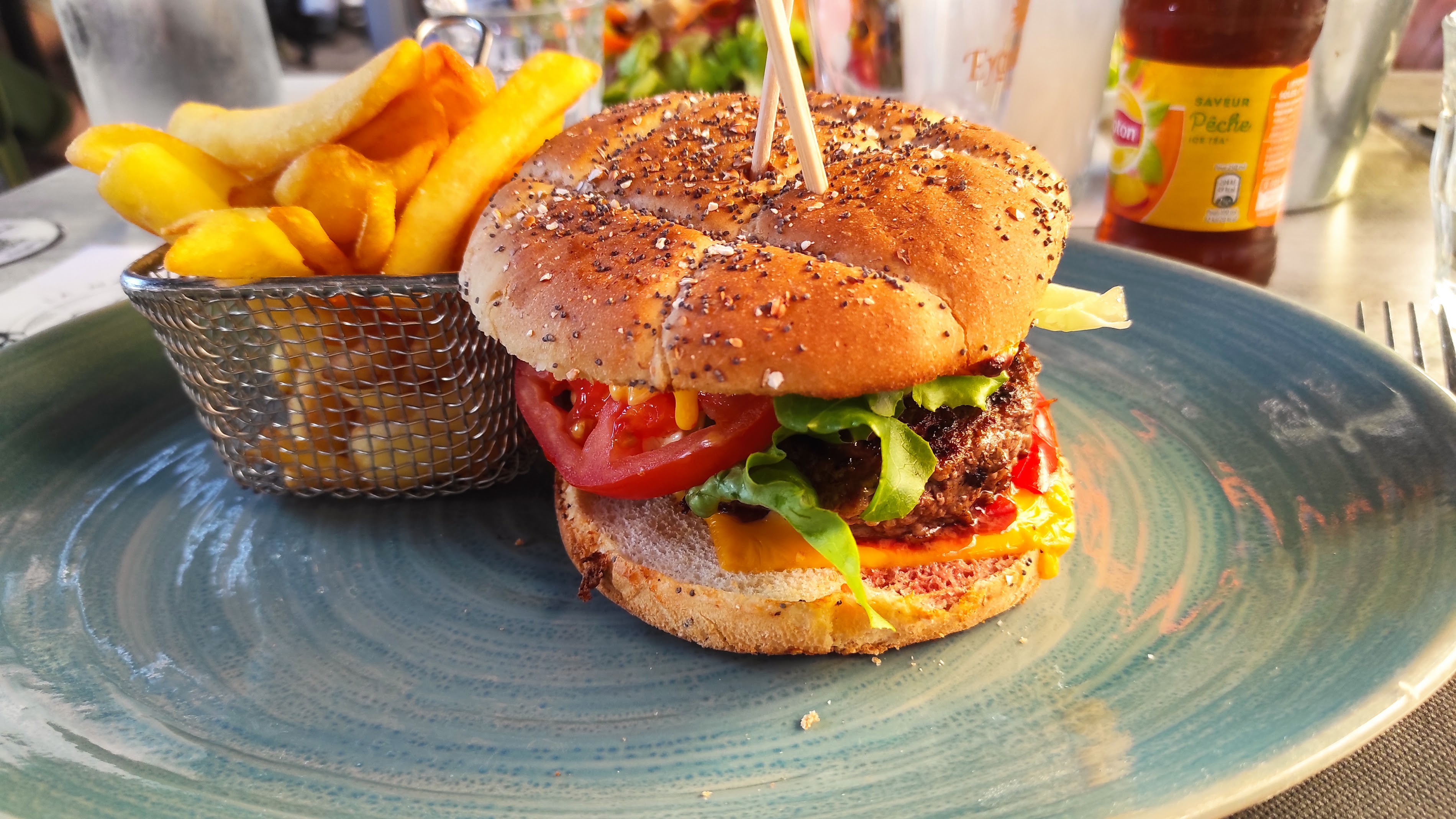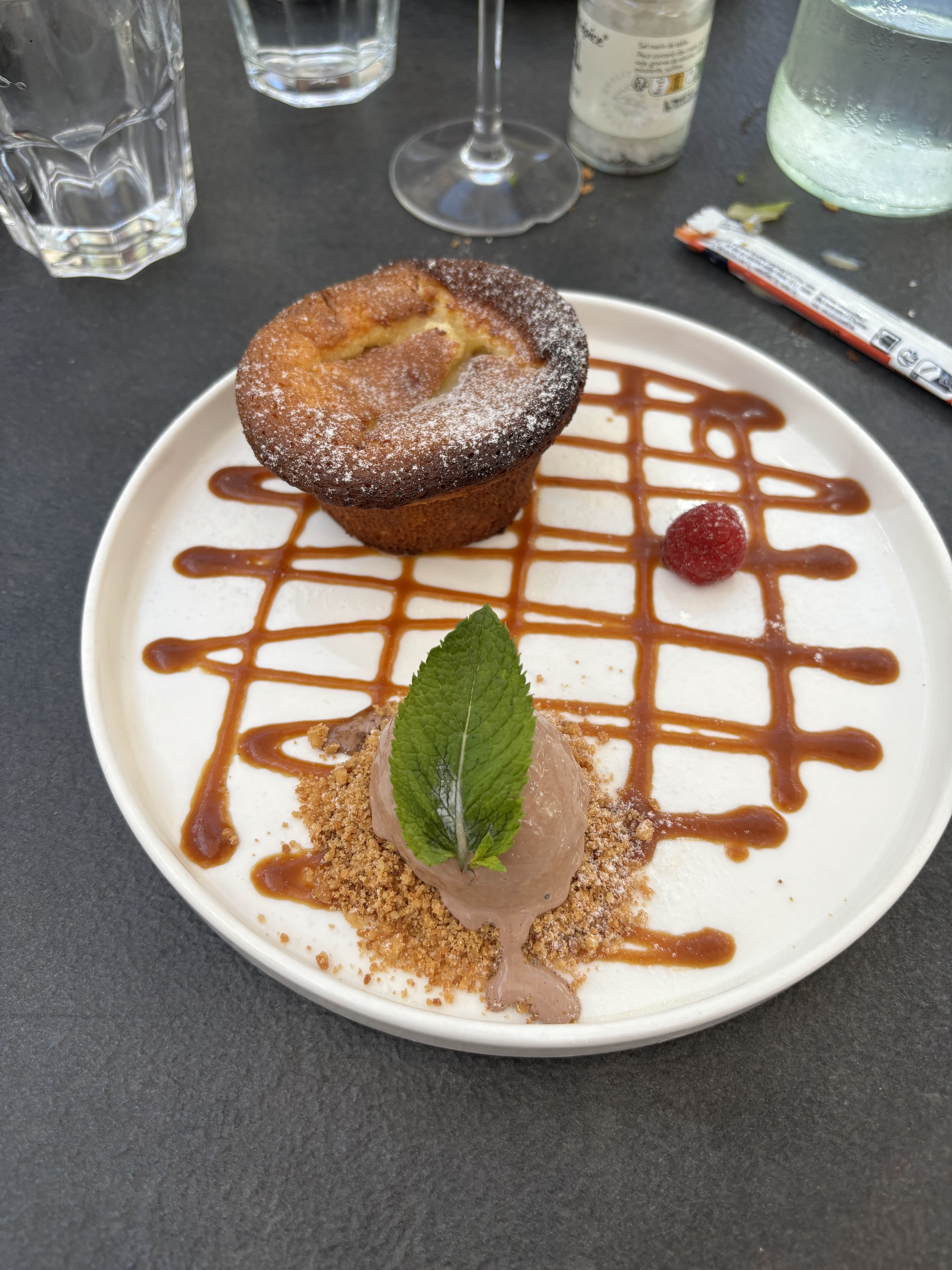 Excellent Food in a warm & friendly atmosphere. Friendly Staff. Good Beer & Kir Cremant Aperitif. A tasty bottle of Provence Rose. A terrine to start which was full of flavour. Two Burgers which were excellent & a selection of local cheeses with a lovely glass of red wine ? & Cafe Gourmand - the creme brûlée was excellent.