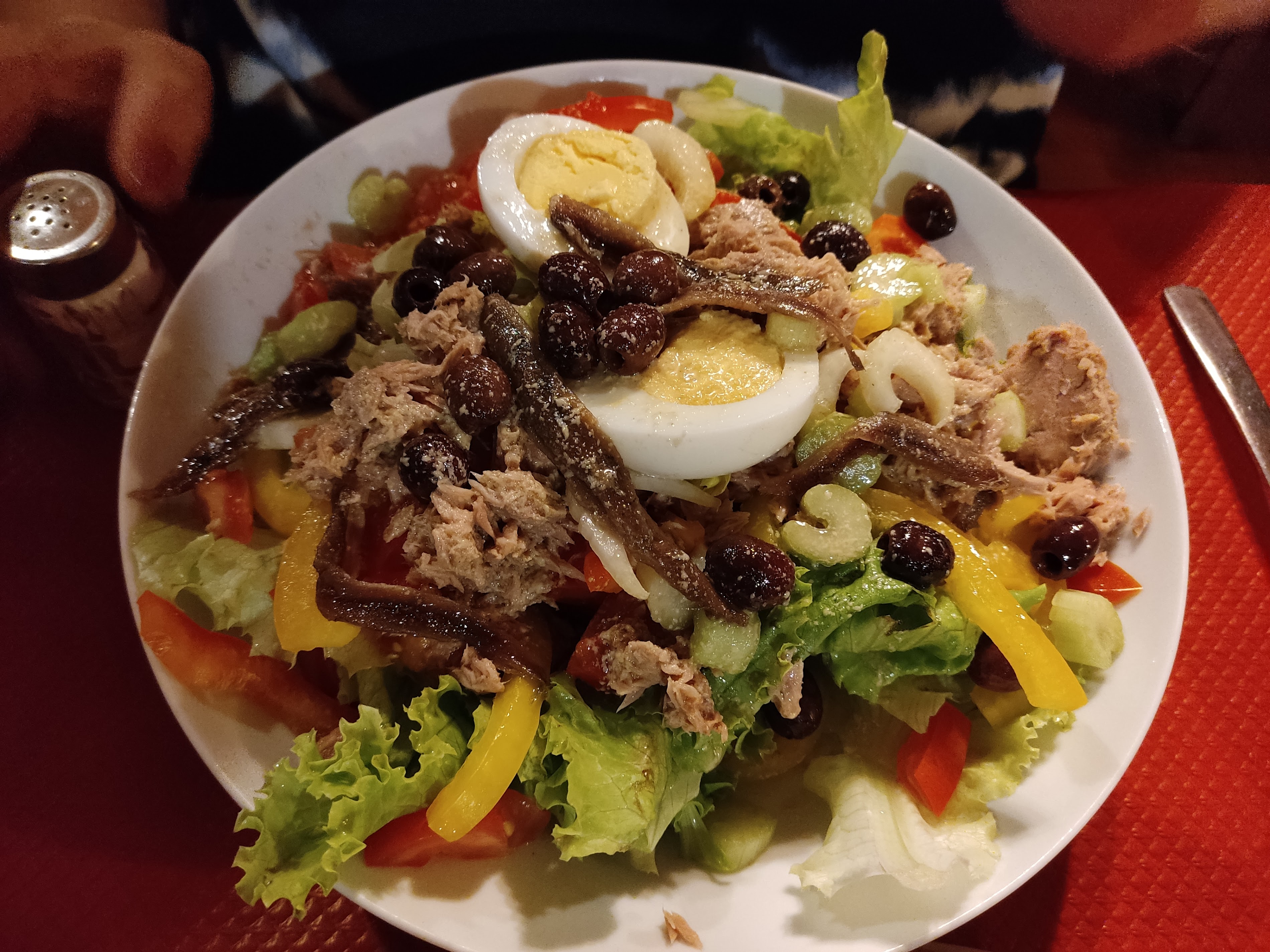 What a lovely traditional restaurant just set back from the front. The food and drinks were first class and very, very reasonably priced for this area. The place was very busy on a Monday night and full of local people which can only be a good sign. Our waiter was very helpful with my obviously limited French. The only downside was we sat outside which we didn’t realise was the smoking area but that was our fault and we know for next time. We will definitely be back before the end of our holiday ☺️