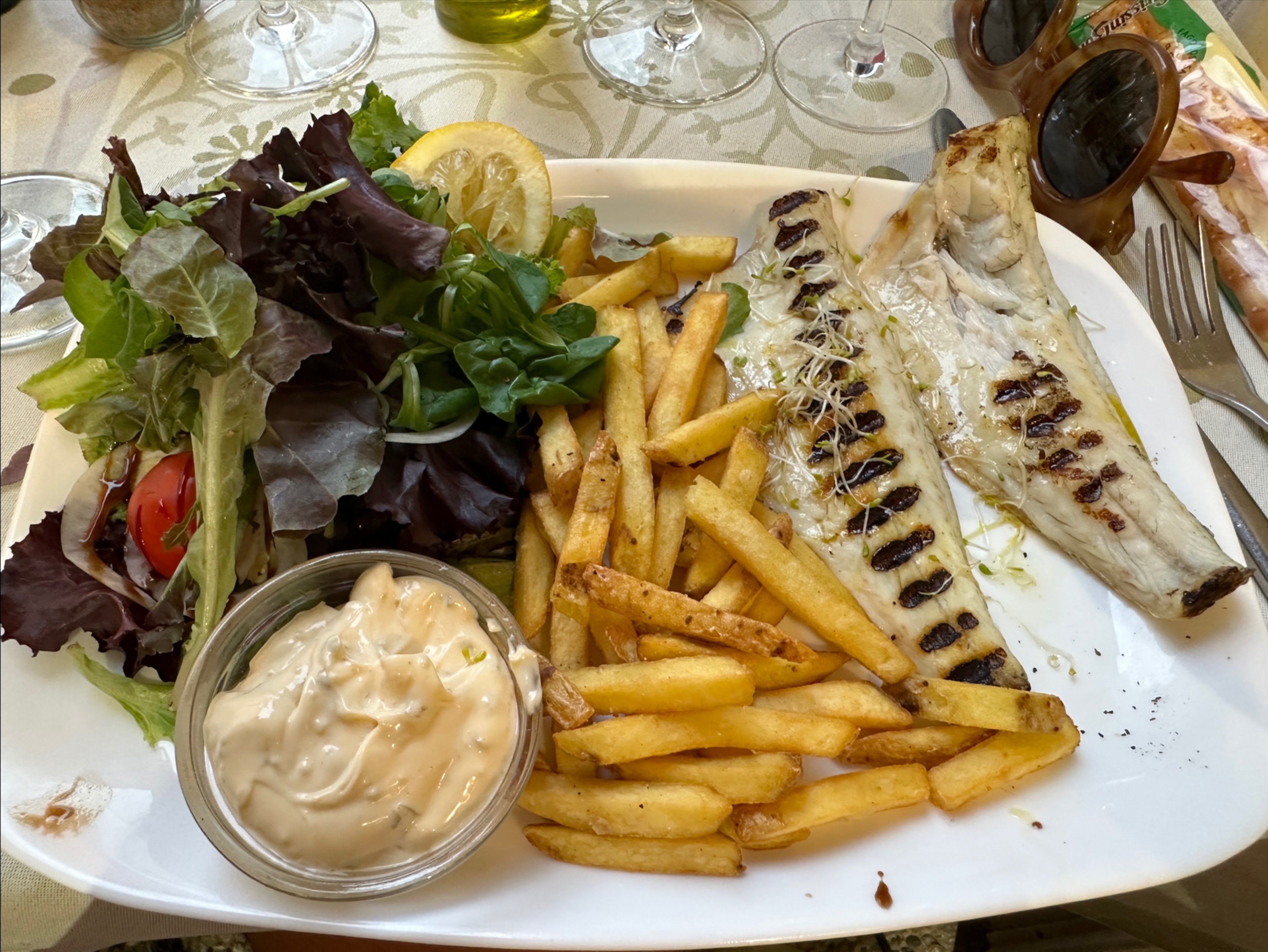 Very disappointing experience. Looking at Google reviews we were expecting a nice meal but unfortunately it's yet another tourist trap. We ordered the fish, which was 28 euro and it was 2 smallest tasteless fillets. The waiter said you will get some vegetables, and all we got was a sad salad on the side with a ton of fries. The table next to us ordered the same thing and got sautéed veggies and baked potatoes. We were so disappointed and left hungry. Stay away from this tourist trap.
