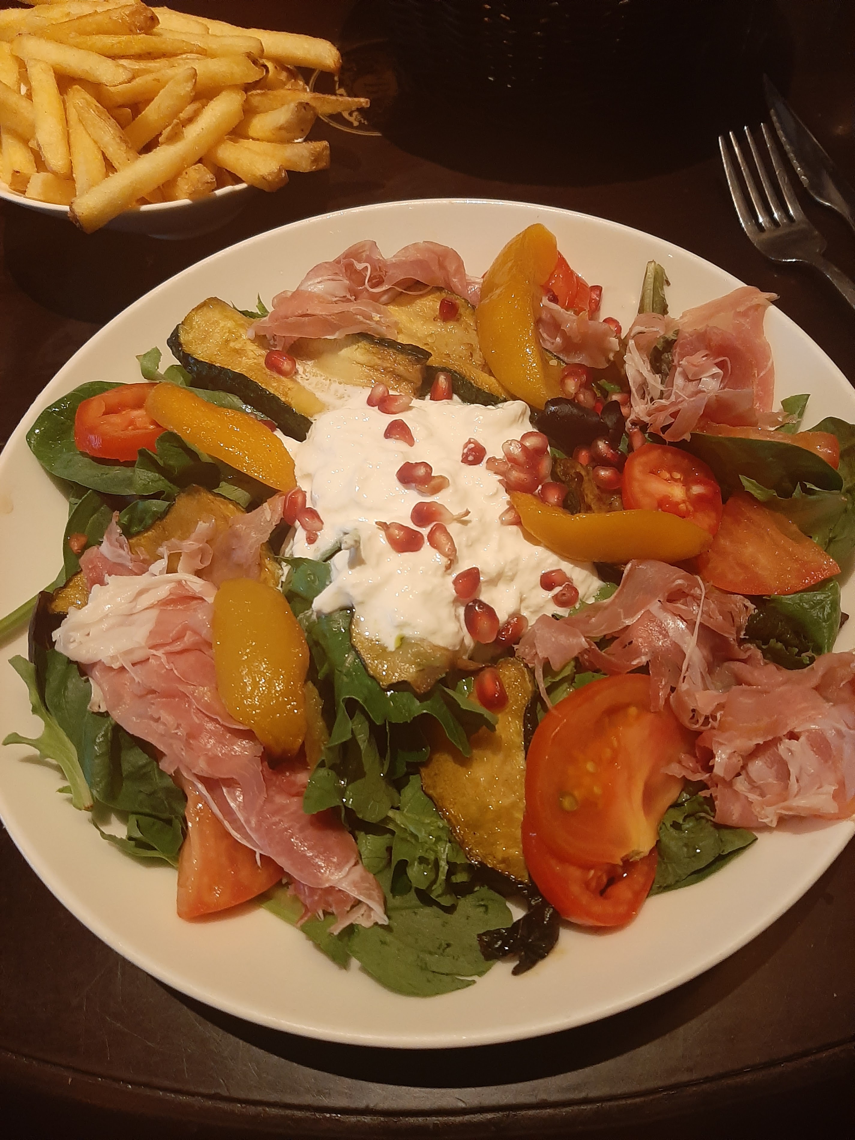 I had a very delicious hamburger and my wife a dish with 3 brochettes. However she complained the chicken piece was dry and not very juicy.