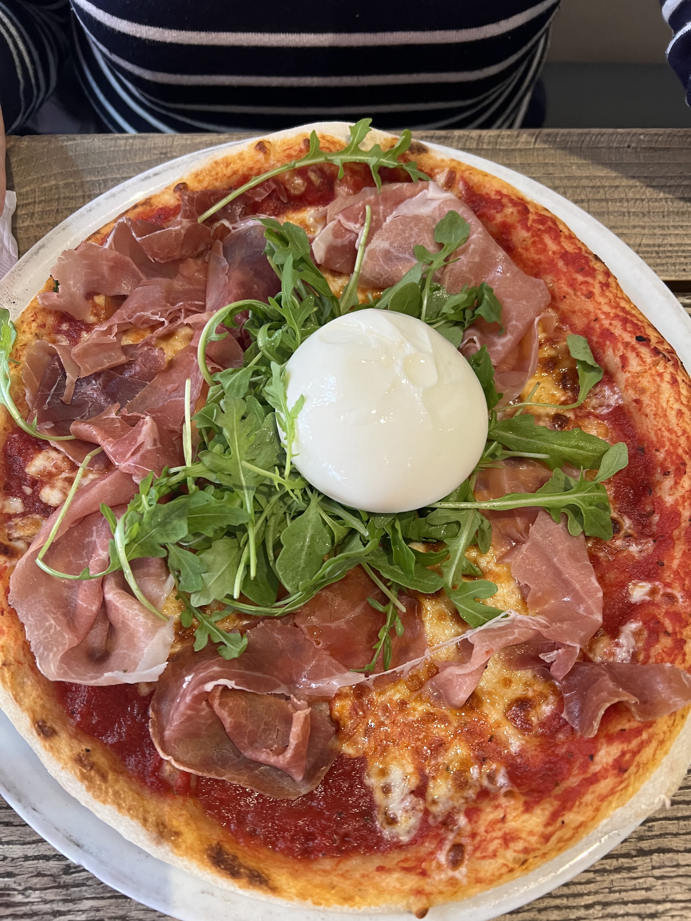 Pizza was very good, enough for one person. Unexpected ingredients like potatoes or eggs - final effect definitely worth trying. Salade sardalaise enormous, croutons and potatoes not fresh, salad maybe, literally 2 cherry tomatoes and jambon serrano.. I enjoyed it because I have a bad taste, but probably noone else would :)