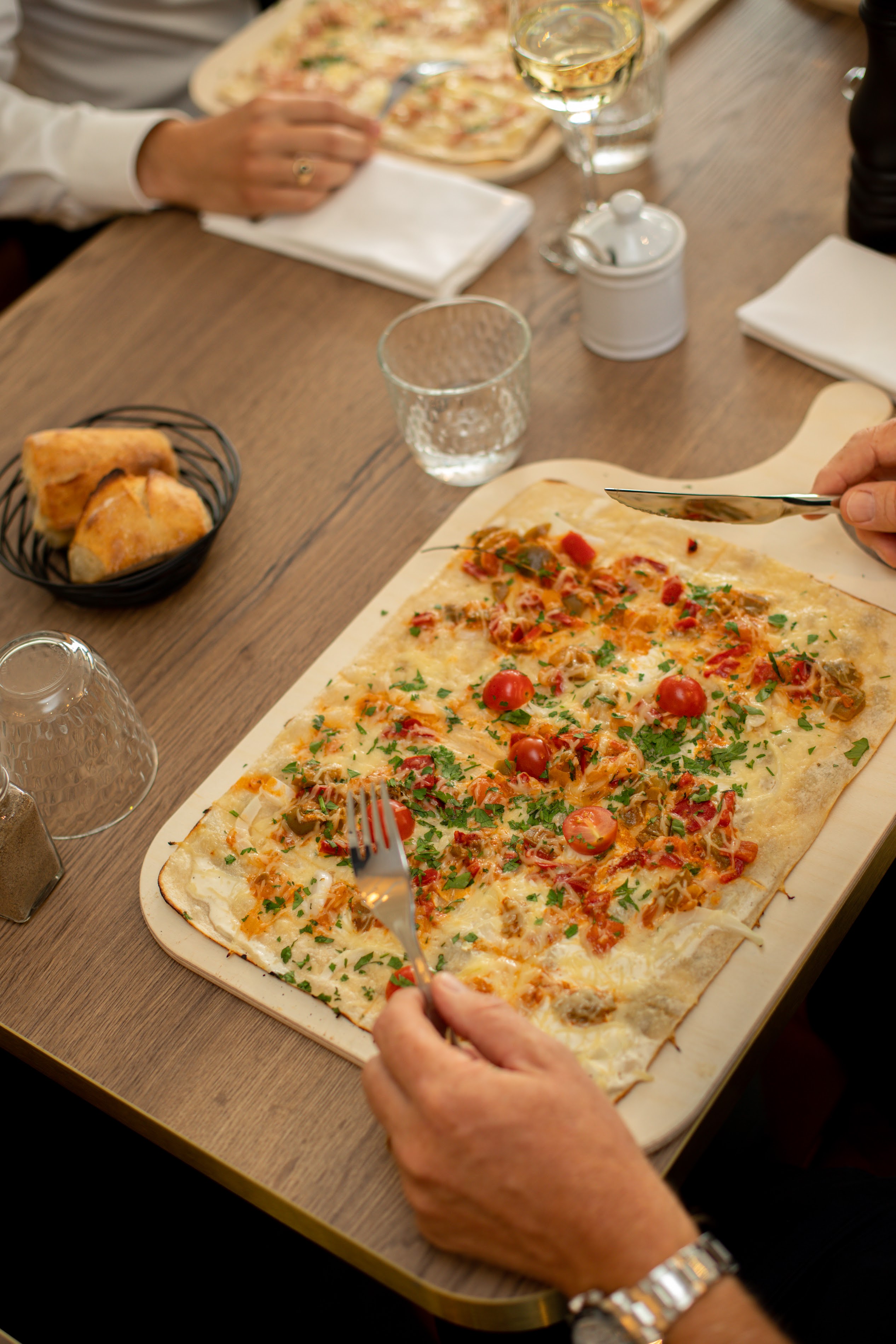 In the heart of the old town and not far from the cathedral, this 15C half-timbered house showcases an easy alliance of old stonework and cosy touches. The chef, who even trained here when he was learning his trade, hits the mark with delicious cuisine that is in tune with the times. The seasonal menu changes regularly and features appealingly tasty dishes such as pork chop with potatoes and a caper jus.