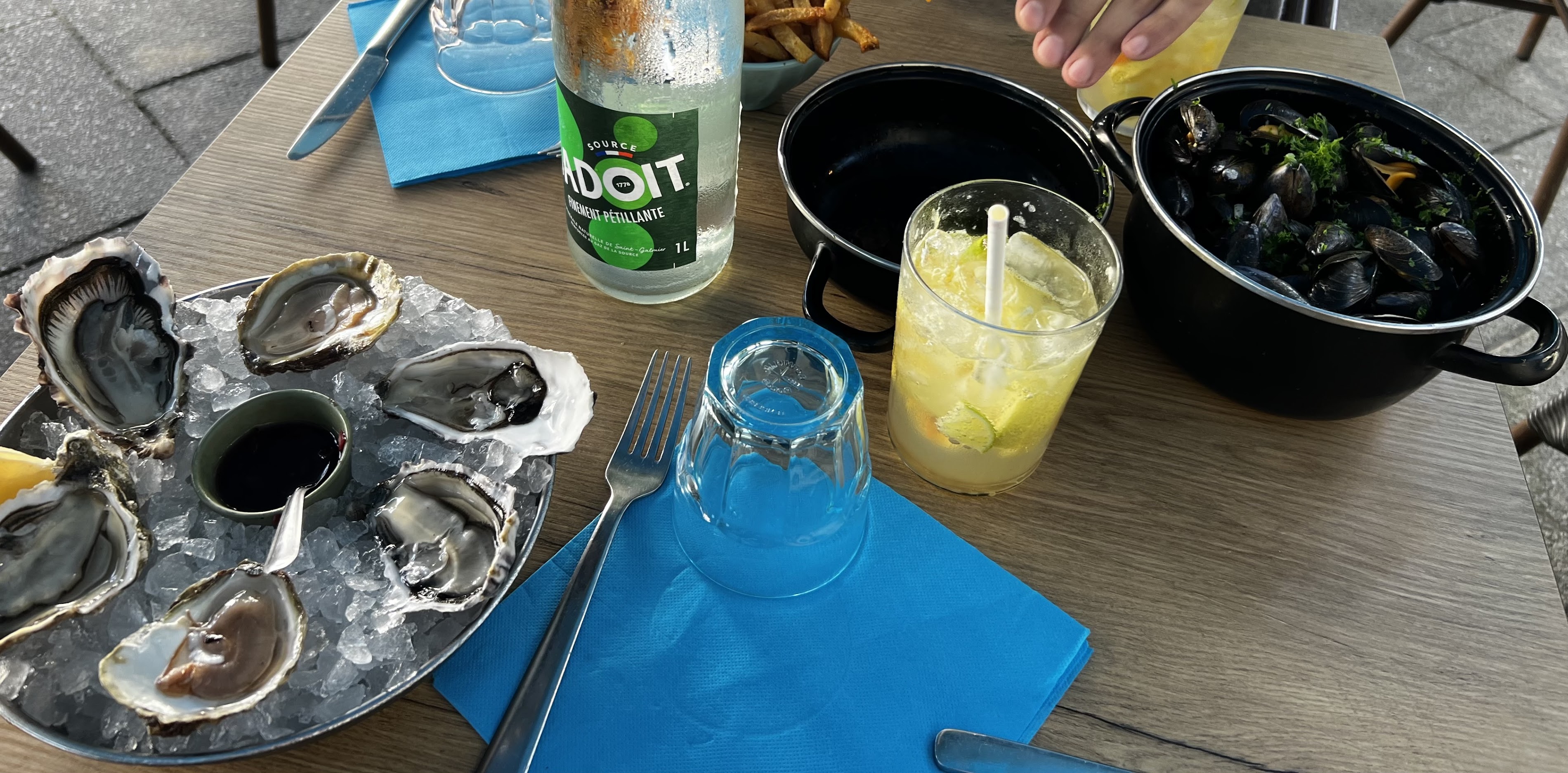 Alongside the traditional fruits de mer platters and moules, the menu also offers dishes inspired by global dishes using local ingredients. I enjoyed an excellent octopus ceviche and a fabulous tuna tartare. For less adventurous souls, notably our shellfish averse 10 year old, they also do a very good fish and chips.