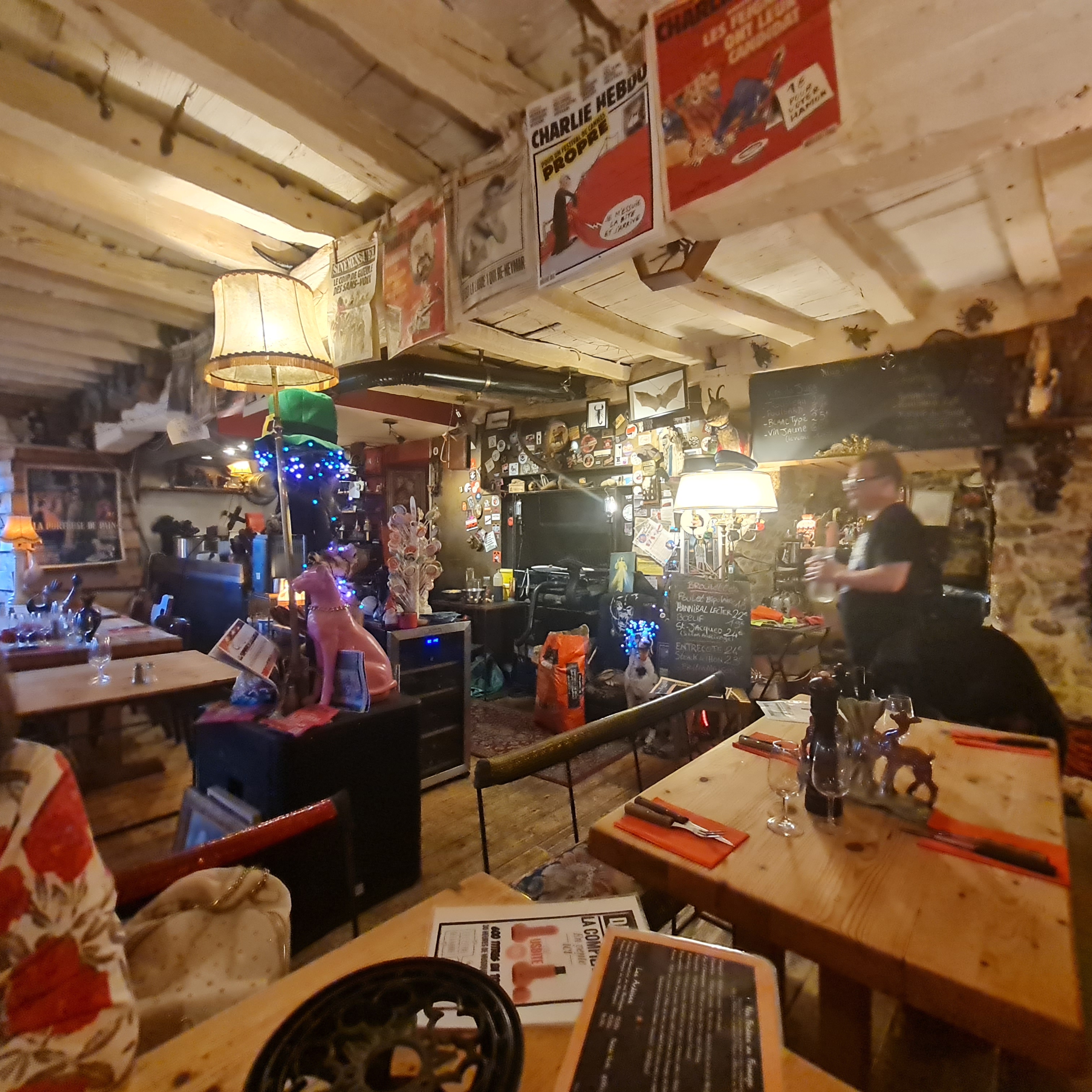 Les Mélèzes is my new favourite place in St Malo! The dining room is a feast for the senses with an overwhelming amount of weird and wonderful objects and pieces of art decorating just about every available piece of wall and ceiling.
