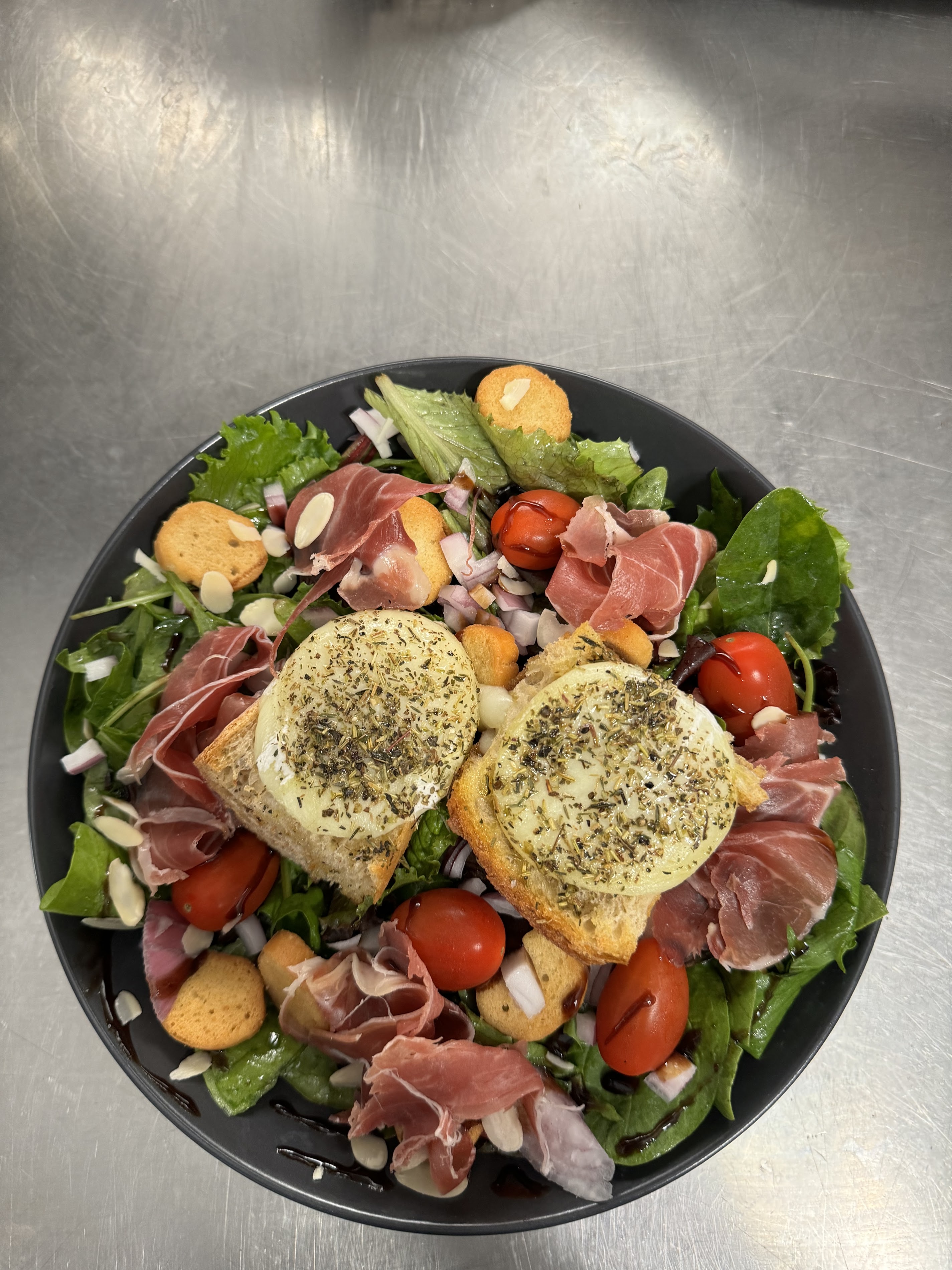 A nice terrace to sit under the trees, with friendly service. Everything was very lively (and perhaps chaotic) because of a party at the restaurant - the atmosphere was good. The food was just okay, albeit nicely presented: I was disappointed the battered camembert in my salad was just four deep fried generic cheese bites, but the dish looked good and tasted fine. I'd return here for drinks and snacks, but not for dinner.