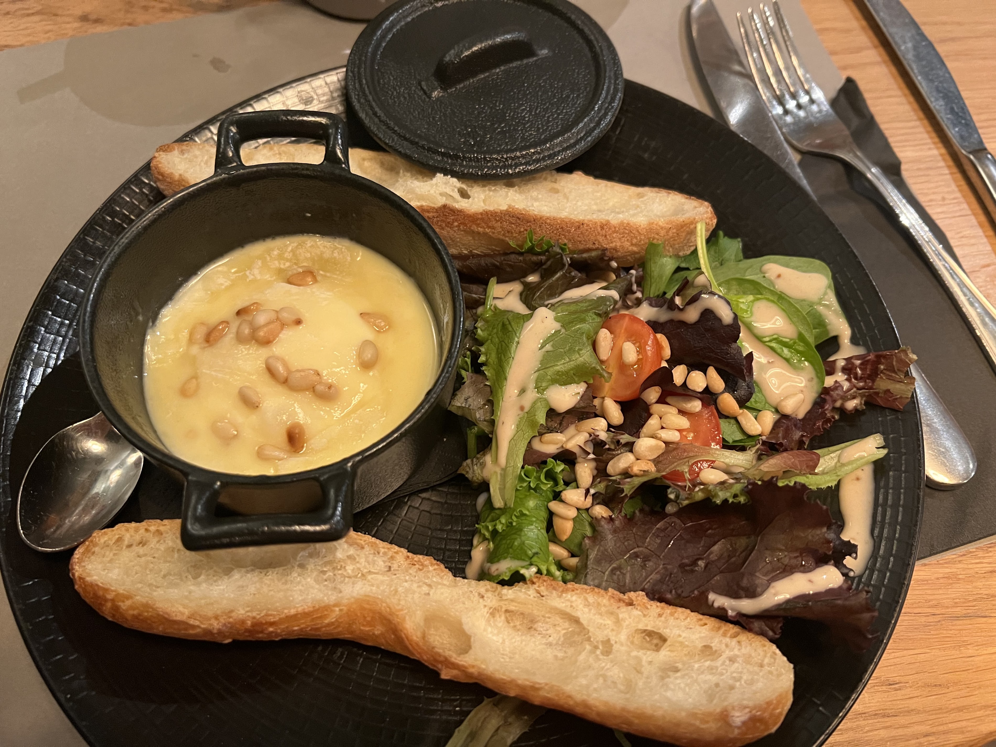 The food was just okay, the meat, maybe a little bit dry. But the quality of the goat cheese was really low, even more for french standards.
