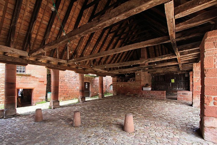 Beautiful small picturesque village well flowered very atypical with its red stones its small shops artisans etc ..parking facilitated by car parks nearby Because the village is pedestrian